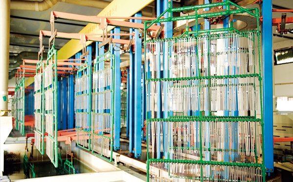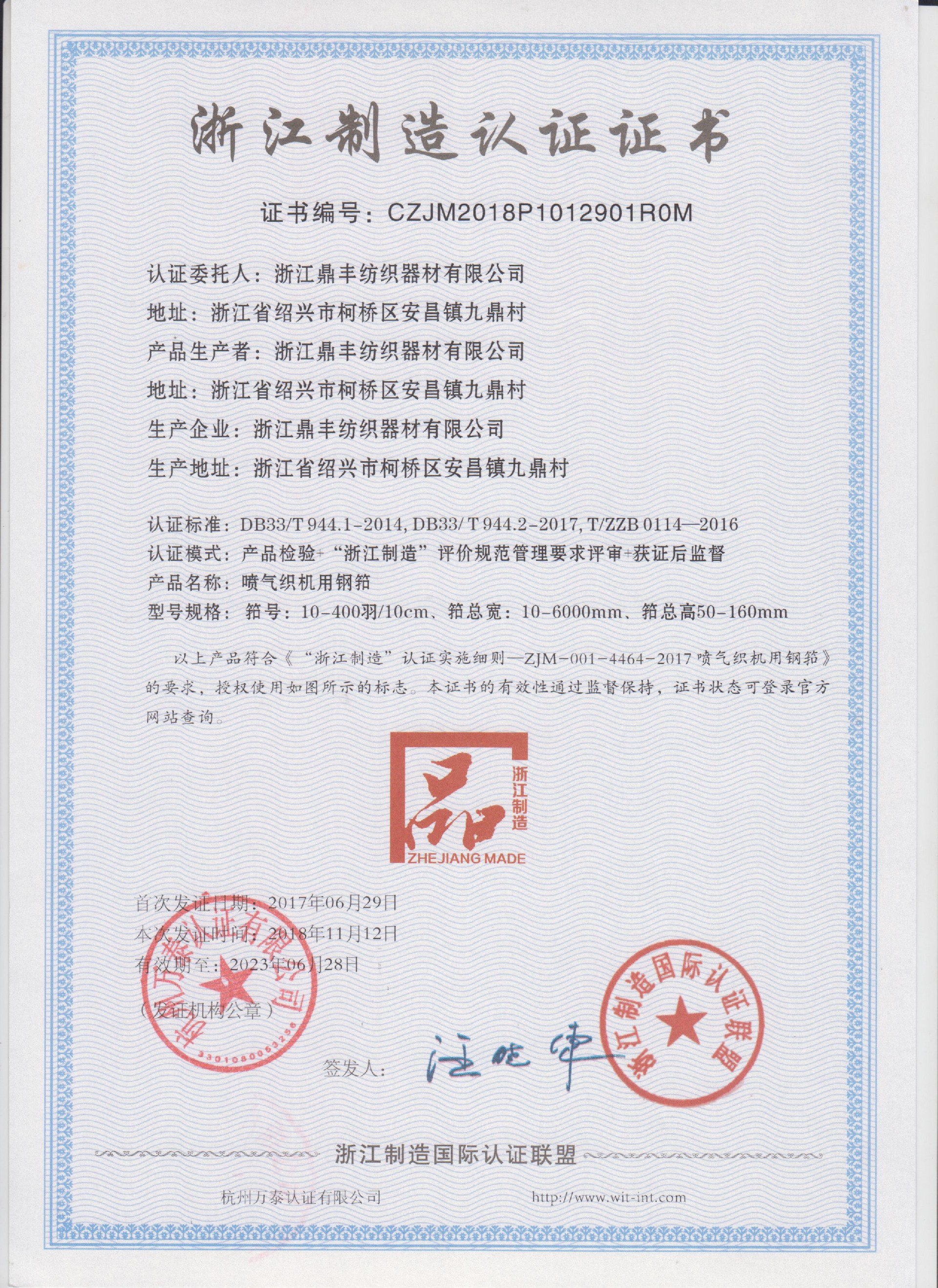 公司現有固定資產6000余萬元,員工300余人,現具有年產噴氣異型筘12萬米,劍桿筘32萬米,噴水筘5萬米,綜框20萬片,鋼片綜2億片,停經片1.5億片, 織軸1.2萬套的生產能力。公司“越泉”商標被評為“中國馳名商標”。公司通過ISO9001 :2015國際質量體系認證,ISO14001:2015國際環(huán)境管理體系認證,ISO45001:2018國際職業(yè)健康安全管理體系認證,噴氣織機用鋼筘和織機用鋁合金綜框獲得“浙江制造”品牌認證,公司擁有自營進出口權,產品暢銷全國并遠銷印度、巴基斯坦、土耳其、埃及、哥倫比亞、意大利等國家和地區。